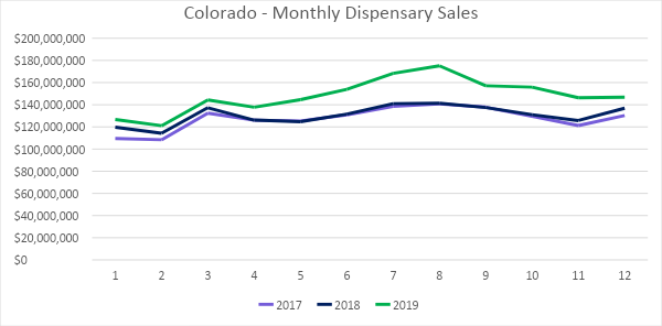 Sales from Colorado’s adult-use and medical dispensaries reached a combined $146.8 million this past December, a three percent increase from November. Compared to December 2018, sales increased by more than seven percent. In the calendar year 2019, sales in the Centennial state totaled at an impressive $1.8 billion in 2019, a 13 percent increase from 2018.