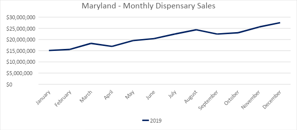 In December 2019, cannabis sales in Maryland’s medical dispensaries reached $27.5 million, a seven percent increase from November. The 2019 calendar year ended with total sales of $252.2 million. Maryland remains a medical only market for now, but sales are growing as new dispensaries open and more patients are registered.