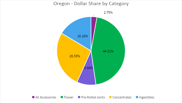 In December, Flower sales reached $35.6 million, accounting for nearly 51 percent of overall revenues for the month. Flower sales increased by two percent from the trailing month and 57 percent from the year prior. The year-end tally for flower sales was $349.3 million, a 28 percent increase from 2018.