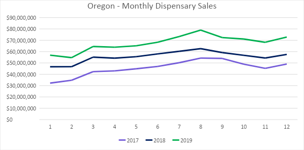 Oregon dispensary sales reached $72.8 million this past December, a seven percent increase from November. Compared to December 2018, overall sales increased by 27 percent. The end of year results for all 2019, sales increased by 21 percent compared to 2018, reaching more than $810 million in total annual sales.