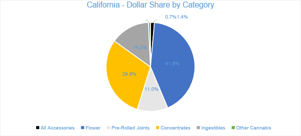 Sales from Flower generated $143.7 million in August 2020, accounting for nearly 42 percent of overall sales. Compared to the trailing month and August 2019, Flower sales grew by six percent and 58 percent, respectively. Pre-rolled Joints, which are tracked as a separate category, accounted for more than 11 percent of overall August sales at $37.9 million, growing nearly seven percent from the trailing month.