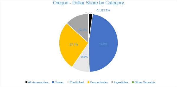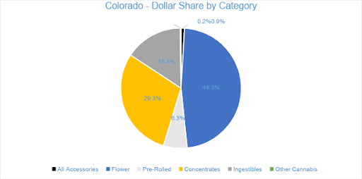 Sales of flower accounted for 48 percent of overall revenue for the month with $44 million in sales, decreasing two percent from July. Pre-rolled Joints, which are tracked as a separate category, accounted for just under four percent of revenue, with $3.6 million in sales. Compared to the previous August, Flower sales increased by 42 percent and Pre-rolled Joints increased by 89 percent.