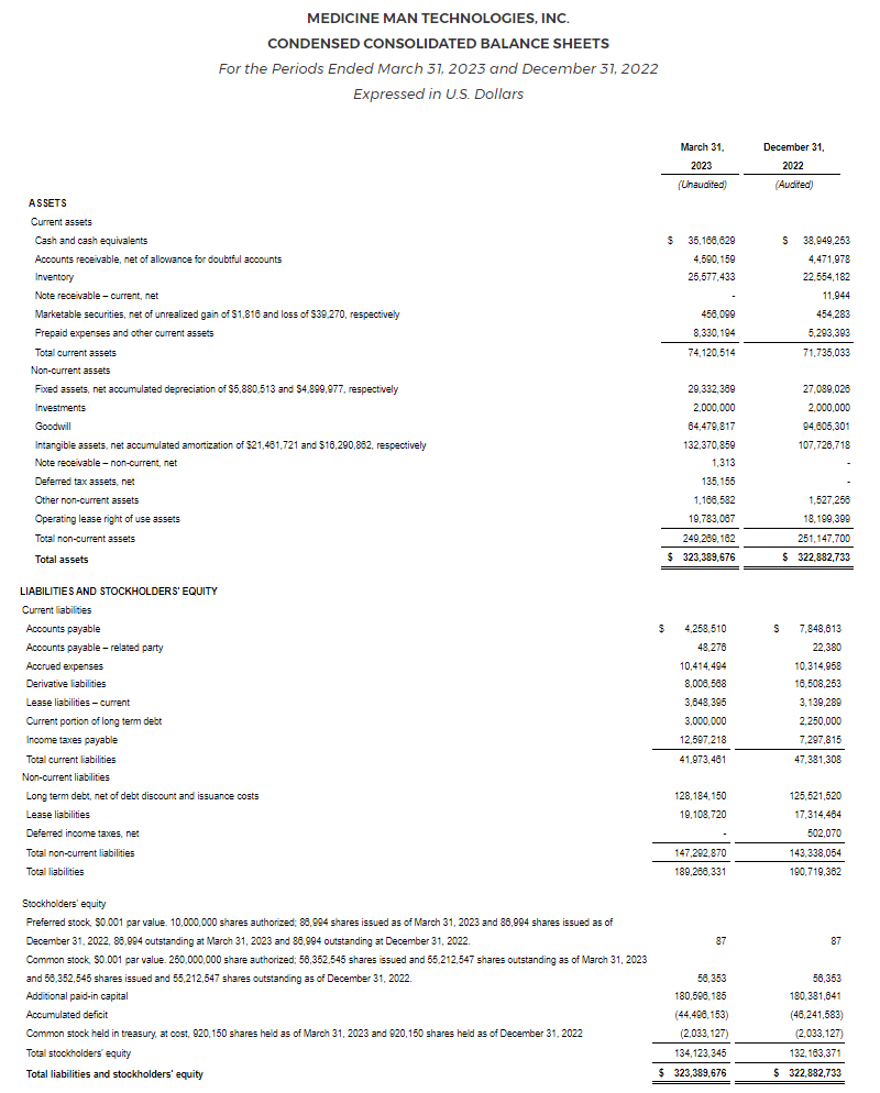 Medicine Man Technologies, Inc. was Schwazze’s former operating trade name. The corporate entity continues to be named Medicine Man Technologies, Inc.