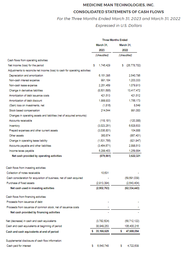 As a result, Schwazze generated Net Income of $1.7 million dollars compared to a Net Loss of ($26.8) million dollars for Q1 2023.