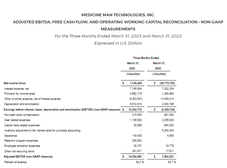 DENVER, May 10, 2023 /PRNewswire/ – Medicine Man Technologies Inc. operating as Schwazze, (OTCQX: SHWZ) (NEO: SHWZ) (“Schwazze” or the “Company”), today announced financial results for the first quarter (“Q1 2023”).