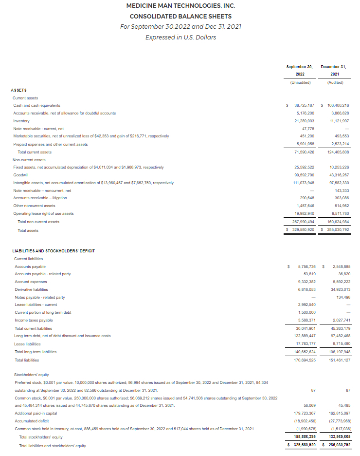 DENVER, Nov. 9, 2022 /PRNewswire/ – Medicine Man Technologies Inc. operating as Schwazze, (OTCQX: SHWZ) (NEO: SHWZ) (“Schwazze” or the “Company”), today announced financial results for the third quarter ended September 30, 2022 (“Q3 2022”).