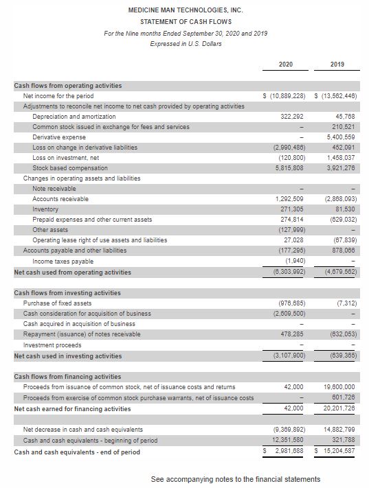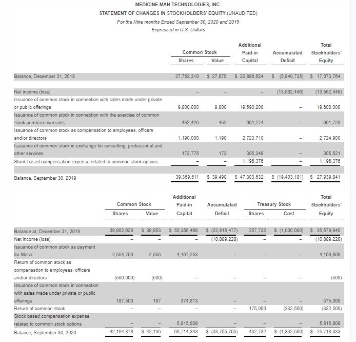 Schwazze, Formerly Operating as Medicine Man Technologies, Inc., Provides Business Update and Announces Strong Third Quarter 2020 Financial Results