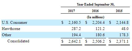 On November 28th, the company revealed the price tag for the first time in its 10-K filing with the SEC, spending $72.2mm. With the acquisition, Scotts Miracle-Gro has now invested $565mm since March 2015 to assemble its portfolio, not including its acquisition of the majority of AeroGarden. According to the filing, Hawthorne produced sales of $287.2mm in FY17, up 137%, with organic growth of about 23% and acquisitions fueling 112% growth. Sales from Hawthorne, which produced operating profits of $35.5mm, represented 11% of the overall corporate sales.