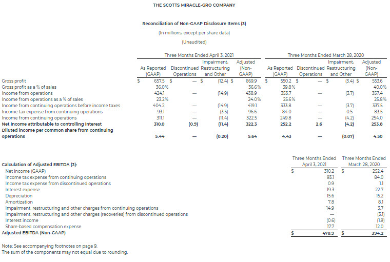 With approximately $4.1 billion in sales, the Company is one of the world’s largest marketers of branded consumer products for lawn and garden care. The Company’s brands are among the most recognized in the industry. The Company’s Scotts®, Miracle-Gro® and Ortho® brands are market-leading in their categories. The Company’s wholly-owned subsidiary, The Hawthorne Gardening Company, is a leading provider of nutrients, lighting and other materials used in the indoor and hydroponic growing segment. For additional information, visit us at www.scottsmiraclegro.com.