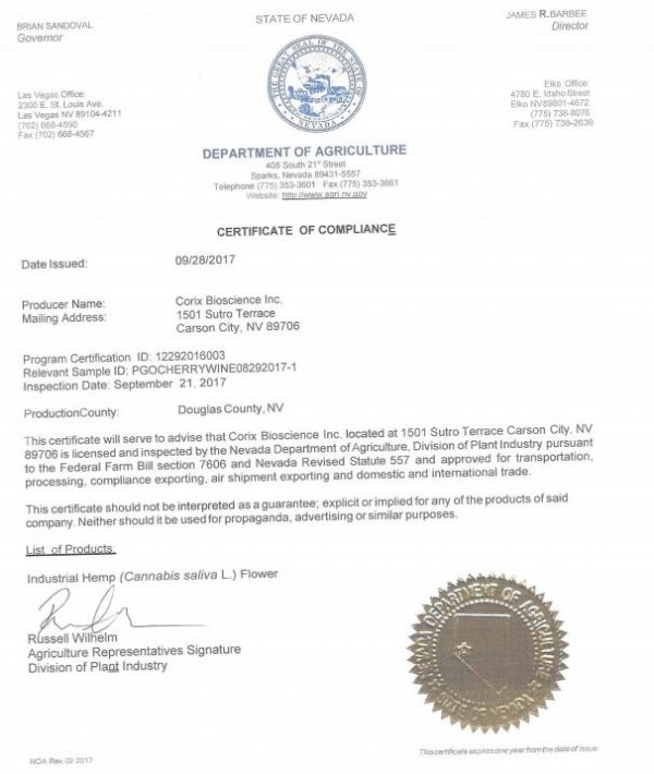 The Commission temporarily suspended trading in the securities of Corix Bioscience, Inc. because of questions that have been raised about the accuracy and adequacy of publicly disseminated information concerning, among other things, the company’s assets and operations in Nevada. This information includes claims that CXBS holds a valid, state-issued export license in Nevada for growing, processing, and distributing industrial hemp.