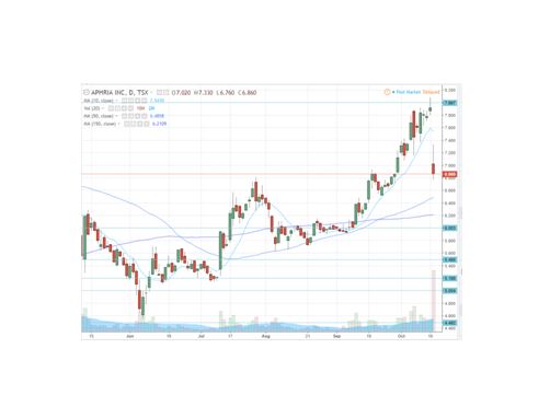 Aphria (TSX: APH) (OTC: APHQF announced a deal on Tuesday morning, selling over 11mm shares at $7.25 for gross proceeds in excess of $80mm in a deal set to close on or about November 7th. Supreme Pharma (TSXV: FIRE) (OTC: SPRWF) also priced a bought deal, selling $30mm convertible notes (8% interest, convertible at $1.60) with warrants at $1.80.