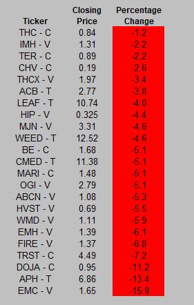 Despite the profit taking, the LP sector remains up strongly over the past few months, as the stocks have responded favorably to the news from the provinces thus far regarding distribution when Canada legalizes in 2018.