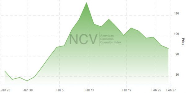 The American Cannabis Operator Index moved higher for the fifth consecutive month in February, advancing 20.5% to 93.70: