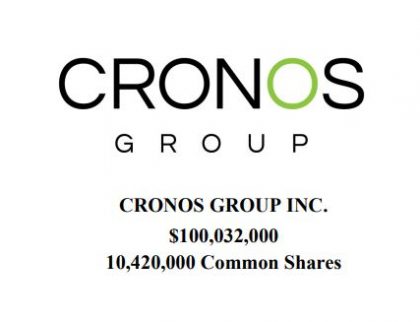 Cronos Group Announces Closing of Previously Announced $100 Million Bought Deal TORONTO, April 6, 2018 /PRNewswire/ – Cronos Group Inc. (NASDAQ, TSX-V: CRON) (“Cronos Group” or the “Company”) is...