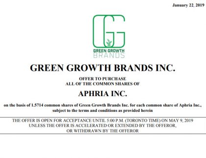 Green Growth Brands Files Offer to Purchase and Circular for Aphria Inc.; Formal Take-over Bid to Commence on January 23, 2019; Receives Commitment for C$150 Million Equity Investment Formal...