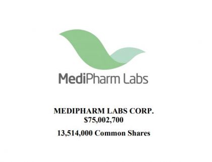 MediPharm Labs Announces $60 Million Bought Deal Equity Financing TORONTO, May 28, 2019 (GLOBE NEWSWIRE) — MediPharm Labs Corp. (TSXV: LABS) (OTCQX: MEDIF) (FSE:MLZ) (“MediPharm Labs” or the “Company”),...