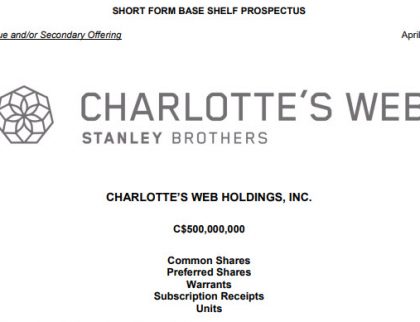 BOULDER, CO, April 10, 2019 /CNW/ – (CSE:CWEB, OTCQX:CWBHF) Charlotte’s Web Holdings, Inc. (“Charlotte’s Web”, or the “Company”) the market share leader in hemp-derived CBD extract products, has filed...