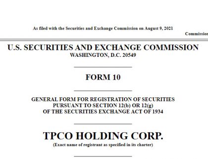 SAN JOSE, Calif., Aug. 10, 2021 /PRNewswire/ – TPCO Holding Corp. (“The Parent Company” or the “Company”) (NEO: GRAM.U) (OTCQX: GRAMF), today announced that it has filed a registration...
