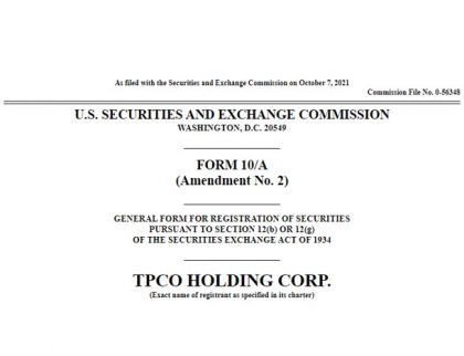 SAN JOSE, Calif., Oct. 11, 2021 /PRNewswire/ – TPCO Holding Corp. (“The Parent Company” or the “Company”) (NEO: GRAM.U) (OTCQX: GRAMF), today announced that its amended registration statement on Form 10 (the “Registration Statement”)...