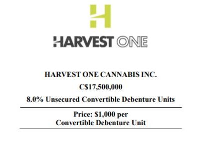 Harvest One Announces $15 Million Bought Short form Prospectus Offering of Convertible Debenture Units TORONTO, ONTARIO–(Marketwired – Nov. 20, 2017) – Harvest One Cannabis Inc. (TSX VENTURE:HVST) (“Harvest One”...