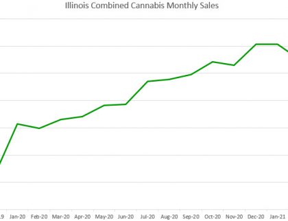 Illinois total cannabis sales reached $110.3 million in February, down 9% from January (3 fewer days) and up 85% from a year ago (1 fewer day): Adult-use sales, according...