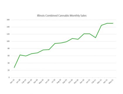 Illinois total cannabis sales reached $150.6 million in May, up 0.2% from April despite an extra day and up 97% from a year ago : Adult-use sales, according to the...