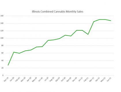 Illinois total cannabis sales reached $147.4 million in June, down 2.1% from May, which had an extra day, and up 90.6% from a year ago : Adult-use sales, according to...