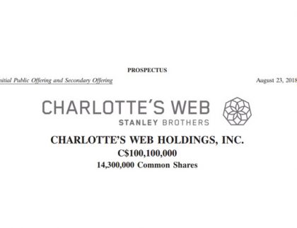Charlotte’s Web Holdings, Inc. Files Final Prospectus and Announces Pricing of Initial Public Offering BOULDER, CO, Aug. 24, 2018 /CNW/ – Charlotte’s Web Holdings, Inc. (“Charlotte’s Web” or the...