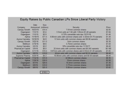 Perhaps the biggest story of 2016 in the cannabis capital markets was the surge in prices and the amount of capital raised for the cannabis industry in Canada during...
