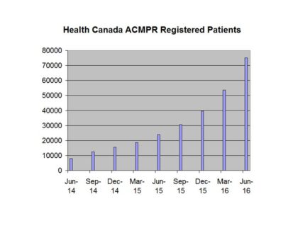 Earlier this week, Health Canada, which oversees the Canadian medical cannabis program, MMPR, reported data for the quarter ending 03/31/16. The number of patients enrolled in the program grew 35.2% from...