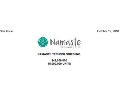 Namaste Announces Closing of $51,750,000 Bought Deal Financing Including Full Exercise of Over-Allotment Option VANCOUVER, British Columbia, Oct. 25, 2018 (GLOBE NEWSWIRE) — Namaste Technologies Inc. (“Namaste” or the...