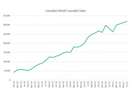 Statistics Canada released May retail sales for the country, with cannabis sales increasing from the April levels, up 5.8% to C$434.5 million. On a per-day basis, sales sales rose 2.4%. April...