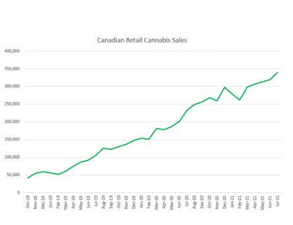 Statistics Canada released July retail sales for the country, with cannabis sales increasing from the June levels, up 1.6% to C$440.7 million. On a per-day basis, sales sales decreased 1.7%. June,...