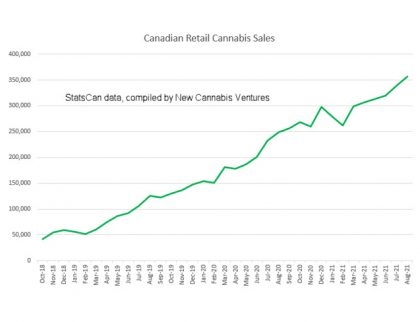 Statistics Canada released August retail sales for the country, with cannabis sales increasing from the July levels, up 2.6% to C$465.1 million.  July, originally reported at C$440.7 million, was revised higher...