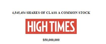 Hightimes Holdings issued a preliminary prospectus for a Reg A+ offering, with a goal of raising up to $50 million by selling shares at $11.00, with net proceeds of...