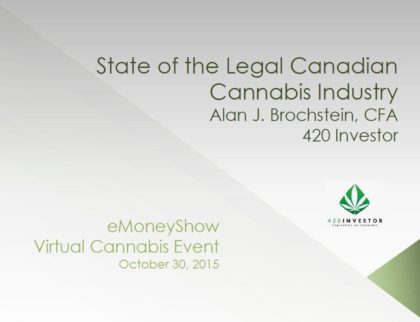 Alan Brochstein, CFA, discussed the “State of the Legal Canadian Cannabis Industry” at the eMoneyShow Virtual Conference on 10/30/15: One of the biggest barriers to investing in cannabis companies is that...