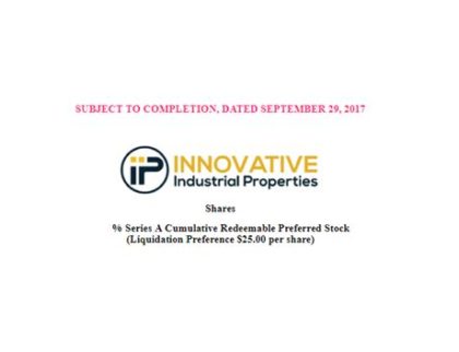 Innovative Industrial Properties (NYSE: IIPR) has filed an S-11 preliminary prospectus to issue a Series A Cumulative Preferred Stock. The Real Estate Investment Trust (REIT), which sold shares at...