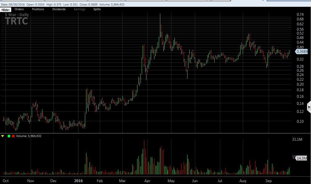 Terra Tech shares rose today on above-average volume, with the stock up almost 300% year-to-date: