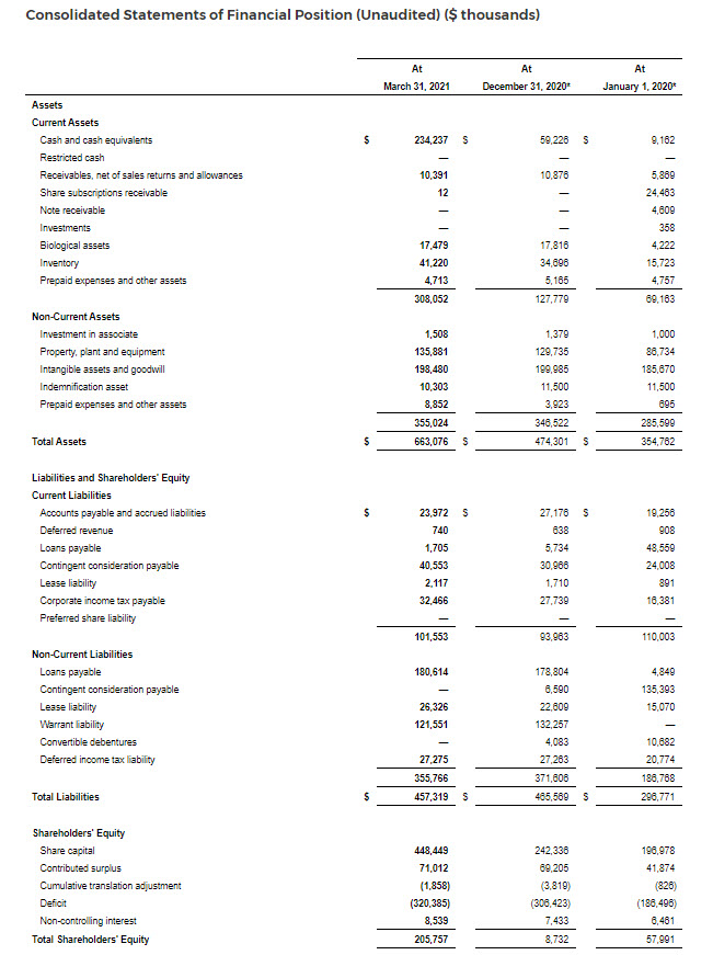 3. Adjusted Gross profit and the respective margin are Non-IFRS measures and are calculated before the impact from biological assets. The 4Q 2020 result excludes $2.3 million of one-time non-cash inventory impairment in Canadian operations.