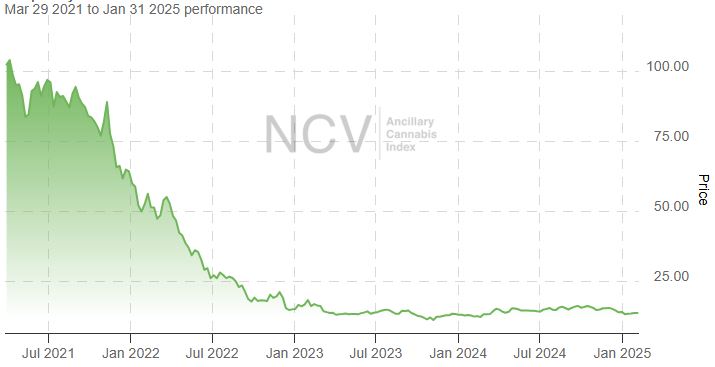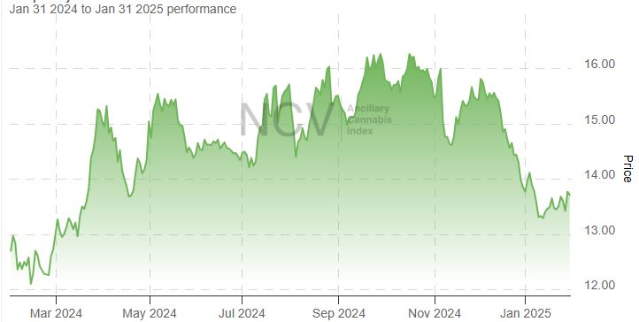 The Ancillary Cannabis Index was weak in December but had a good year last year. In January, it fell 0.4% to 13.71: