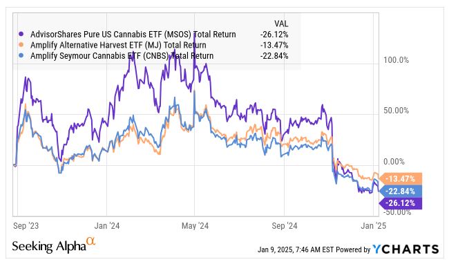 In August of 2023, I wrote about why cannabis ETFs aren’t very good. The article was published days ahead of the news hitting that the Department of Health & Human Services had recommended that the DEA reschedule cannabis. In that article, I compared CNBS, MJ and MSOS. While they bounced right after that article, all are now down a lot since then despite the good news in April that the DEA had formally recommended rescheduling: