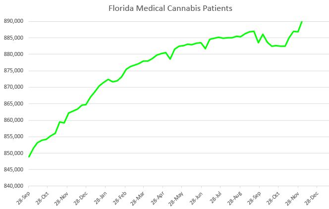 Some program improvements over the years have helped excite Florida residents about the medical cannabis program, which now has smokable flower and edibles. Then, the post-pandemic population boom aided patient growth. There has been an increase in dispensaries to 703 from 617 a year ago. This is an increase of 13.9%, which is much faster than the medical cannabis patient growth has been at 3.2%.