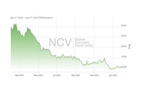 From the deeply depressed year-end 2022 close of 9.71, the Global Cannabis Stock Index rose 10.1% in January to 10.69.