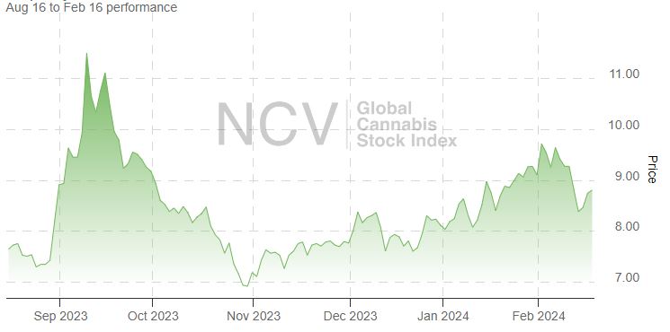 Cannabis stocks have given up a lot of their early 2024 gains, but they remain up year-to-date by 8.5% and since the prior all-time low set for the NCV Global Cannabis Stock Index in late August and the lower-low set in late October:
