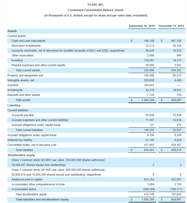 NANAIMO, British Columbia, November 12, 2019–(BUSINESS WIRE)–Tilray, Inc. (“Tilray” or the “Company”) (Nasdaq: TLRY), a global pioneer in cannabis research, cultivation, production and distribution, reports financial results for the third quarter ended September 30, 2019. All financial information in this press release is reported in U.S. dollars, unless otherwise indicated.