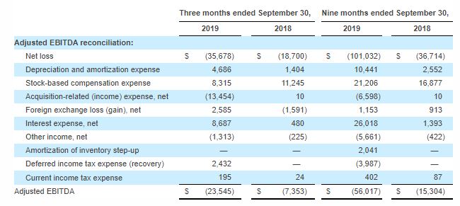 To supplement its financial statements, the Company provides investors with information related to Adjusted EBITDA, which is not a financial measure calculated in accordance with generally accepted accounting principles in the United States (“U.S. GAAP”). Adjusted EBITDA is calculated as net income (loss) before interest expense, net; other income, net; deferred income tax expense (recovery), current income tax expense; foreign exchange loss (gain), net; depreciation and amortization expense; stock-based compensation expense; acquisition-related (income) expense; and amortization of inventory step-up. A reconciliation of Adjusted EBITDA to net loss, the most directly comparable GAAP measure, has been provided in the financial statement tables included below in this press release. The Company believes Adjusted EBITDA provides useful information to management and investors regarding certain financial and business trends relating to the Company’s financial condition and results of operations. Management uses Adjusted EBITDA to compare the Company’s performance to that of prior periods for trend analyses and planning purposes. Adjusted EBITDA is also presented to the Company’s Board of Directors.