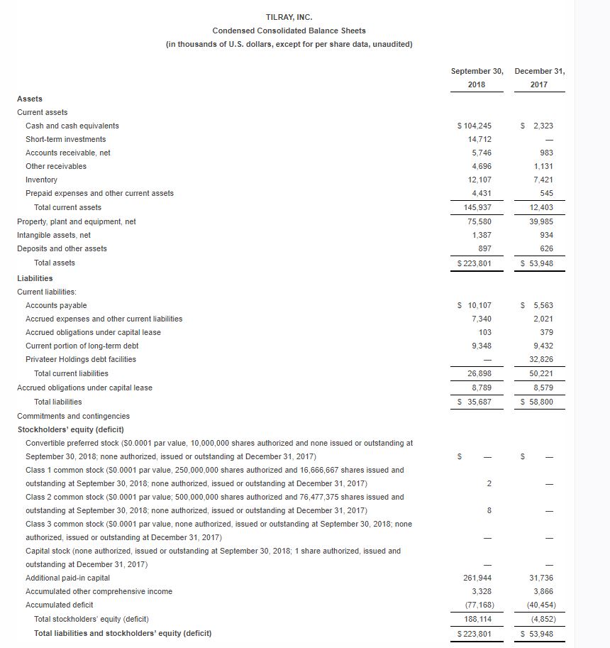 NANAIMO, British Columbia, November 13, 2018–(BUSINESS WIRE)–Tilray, Inc. (“Tilray” or the “Company”) (NASDAQ: TLRY), a global leader in cannabis production and distribution, today reported financial results for the third quarter and nine months ended September 30, 2018. All financial information in this press release is reported in U.S. dollars, unless otherwise indicated.