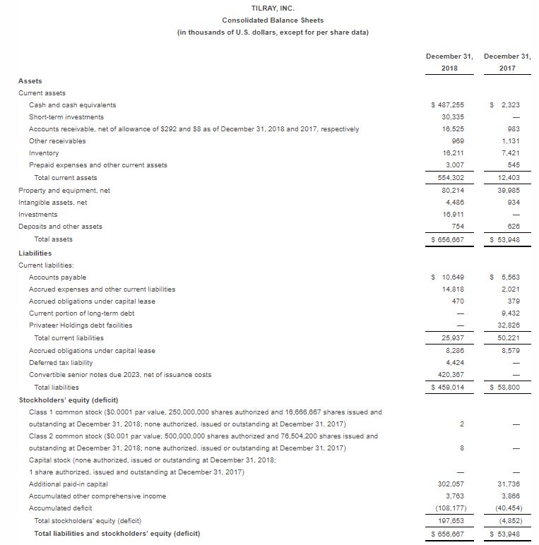 NANAIMO, British Columbia, March 18, 2019–(BUSINESS WIRE)–Tilray, Inc., (“Tilray” or the “Company”) (Nasdaq: TLRY) a global leader in cannabis research, cultivation, production and distribution, today reported financial results for the fourth quarter and year ended December 31, 2018. All financial information in this press release is reported in U.S. dollars, unless otherwise indicated.