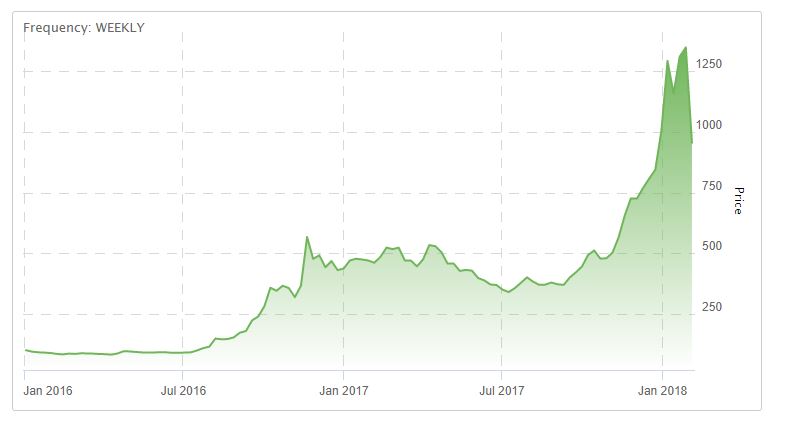 The Canadian Cannabis LP Index includes all publicly-traded LPs, with each member having an equal weight at the time of the index is rebalanced at the end of each month. The index data goes back to the beginning of 2016, and the current index value represents an 855% increase in just over two years: