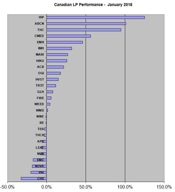The market for publicly-traded Canadian licensed producers (LPs) of cannabis has become one of the most important ones for the global cannabis industry. 14 of the 28 companies collectively raised over C$1.2 billion in January alone, and the top three names in terms of market cap, Aphria (TSX: APH) (OTC: APHQF), Aurora Cannabis (TSX: ACB) (OTC: ACBFF) and Canopy Growth (TSX: WEED) (OTC: TWMJF) have seen combined daily trading value exceed C$1 billion several times in recent weeks.